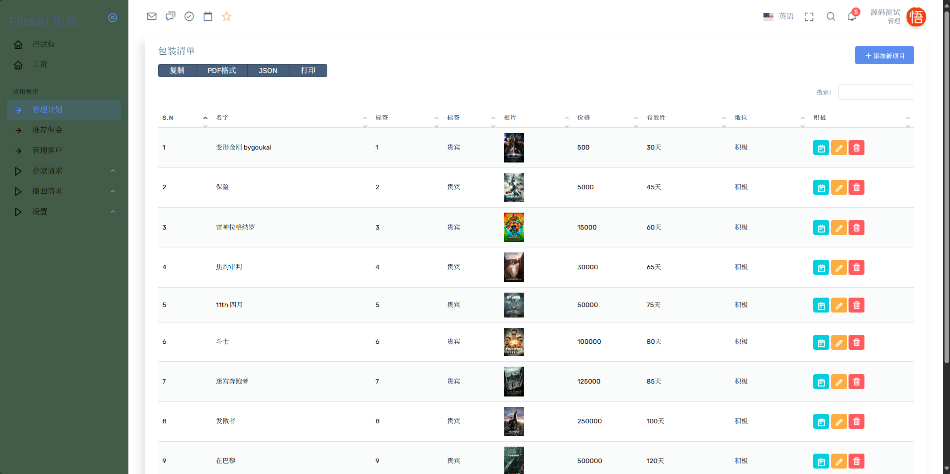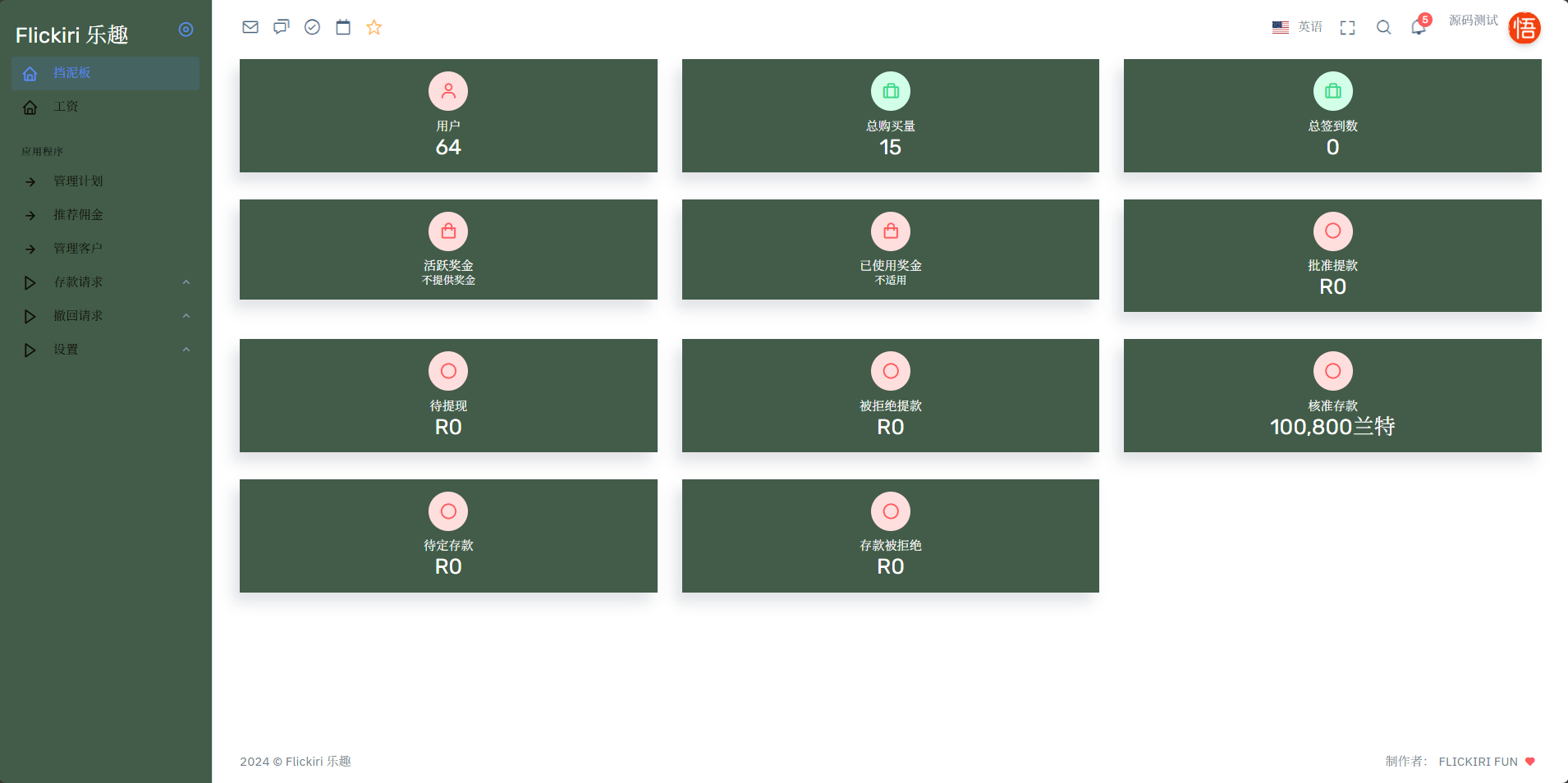 Flickiri Fun 是一套基于Laravel框架开发的海外电影投资理财平台源码,采用纯英文界面设计,前端HTML与后端PHP结合开发。该平台不仅适用于电影投资领域,通过简单配置可转换为任意产品的投资理财平台(原页面为英文,展示为中文页面)。