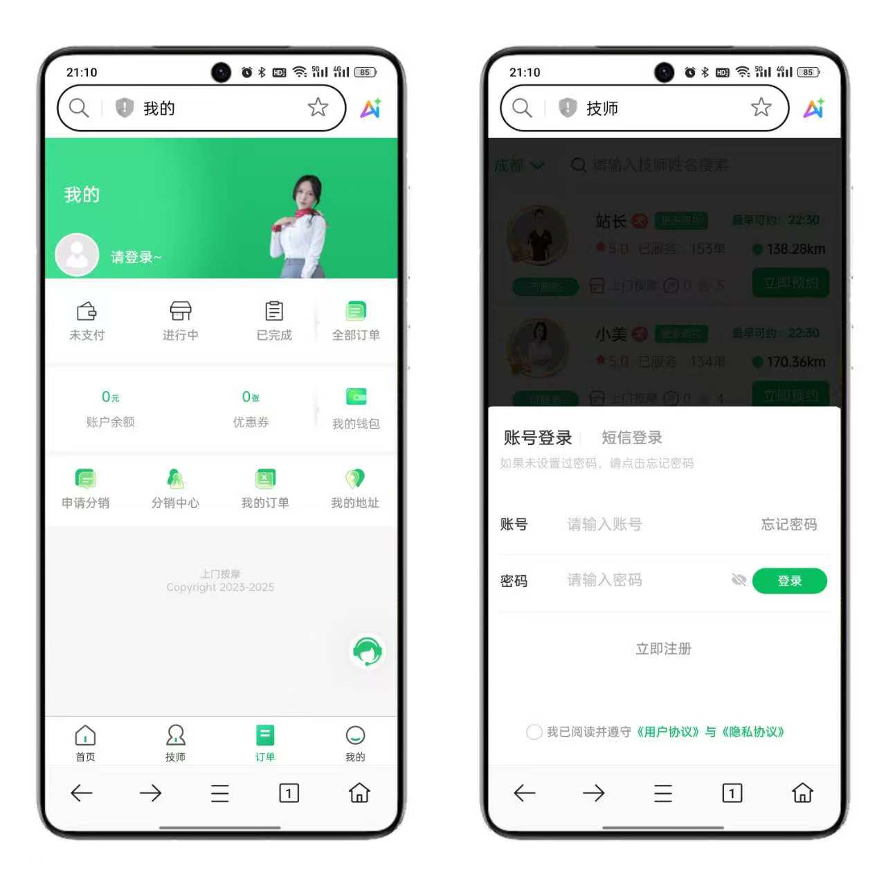 本期为您带来一款功能强大、商业模式成熟的2025年仿东郊同城到家上门按摩系统源码。本系统基于高性能的FastAdmin框架开发,集成了代理分销、多门店管理、可视化店铺装修等核心功能,是您搭建本地生活服务、上门O2O平台的绝佳选择!
