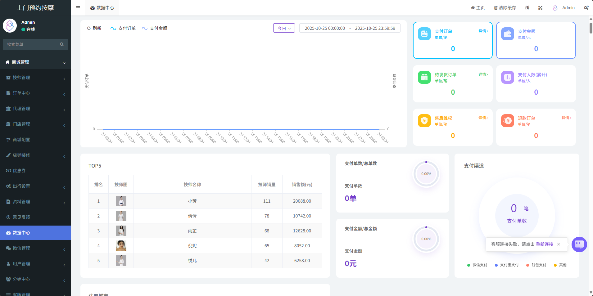 2. 独立后台: 每个门店拥有独立的管理后台,可自主管理服务项目、订单、服务人员和时间安排。